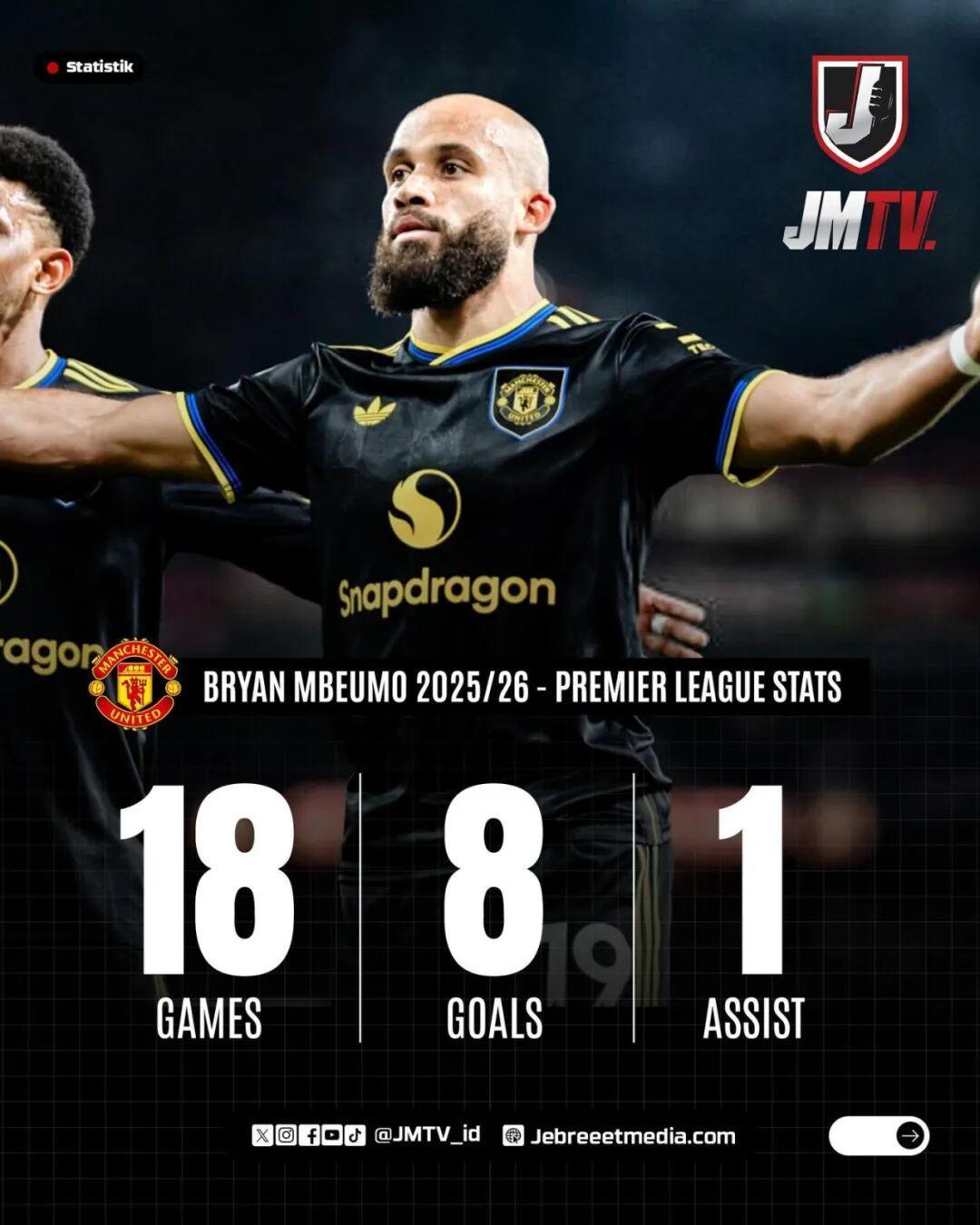 去年夏天, 曼联花费7500万欧元引进姆伯莫。他虽因非洲杯缺席了多场比赛,但在18次英超出场中交出了8球1助的数据。据统计,姆伯莫成为了自2022-23赛季的拉什福德以来,曼联首位在英超单赛季面对阿森纳、曼城以及利物浦全都取得进球的球员。此外,他还是自2012-13赛季的范佩西以来,曼联首位在加盟球队的首个赛季就能够在英超联赛中连续攻破阿森纳、曼城以及利物浦球门的球员。