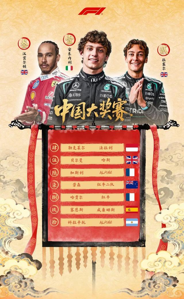 2026F1中国大奖赛刚刚结束,19岁的安东内利获得冠军!